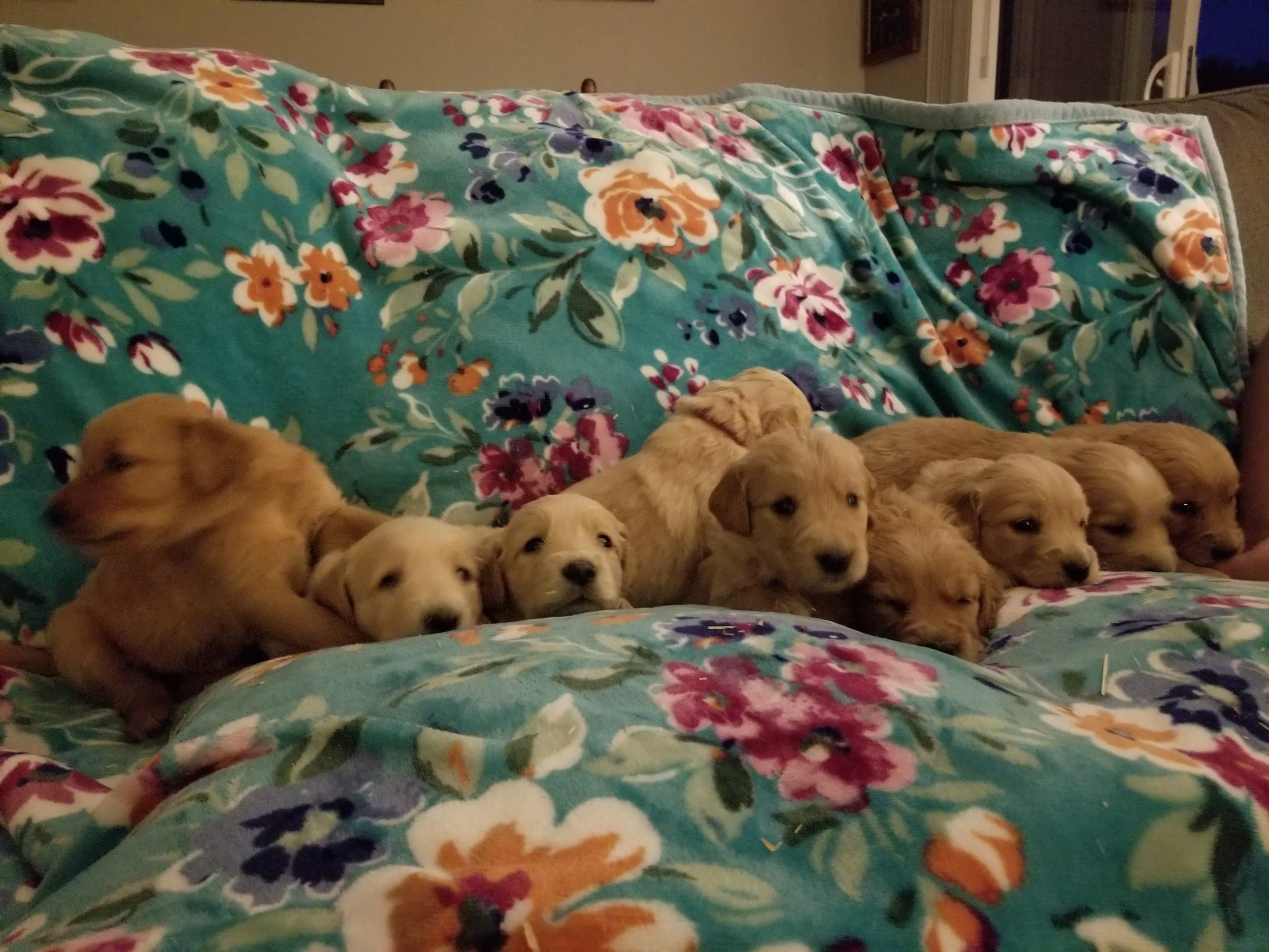 The puppies arrived 7/27/24 ! Five females, 4 males. These adorable puppies, known for their friendly and loyal nature, are ready to find their forever homes. If you're looking for a gentle and intelligent companion, or your future bird dog, these golden retrievers will make the perfect addition to your family. Don't miss out on the chance to bring one of these sweet pups home!